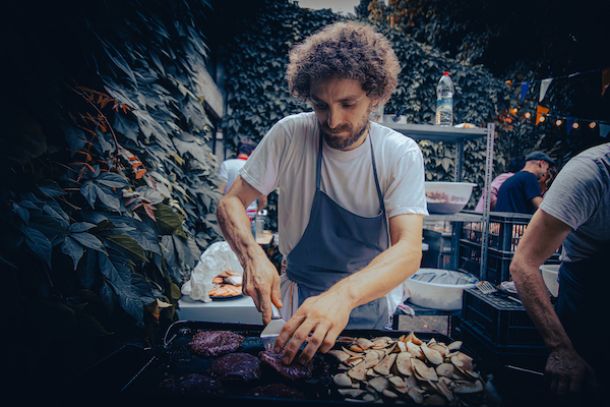Pour ce repas, Bastien, paysan boulanger, nous propose un délicieux burger élaboré à partir de produits locaux.