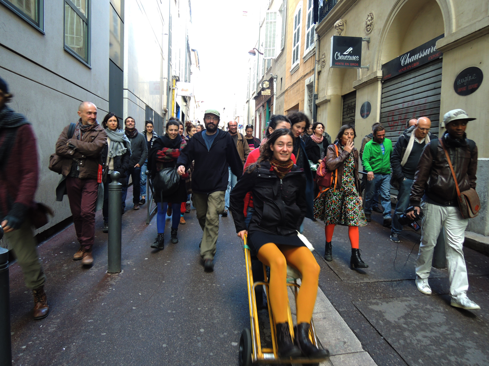 Par ailleurs, le décloisonnement des pratiques artistiques engage les créateurs à explorer de nouveaux contextes de travail et à externaliser leur pratique. À l’ère des smart cities et des préoccupations sécuritaires, cette démarche revêt une dimension publique et citoyenne. Quand l’Agora romaine se pensait comme espace de prise de parole, la place publique peine aujourd’hui à exister par le verbe. La parole semble abandonnée aux marchands et aux égarés. Sans toujours bien en prendre la mesure, l’artiste parleur endosse toujours une fonction symbolique et politique.
