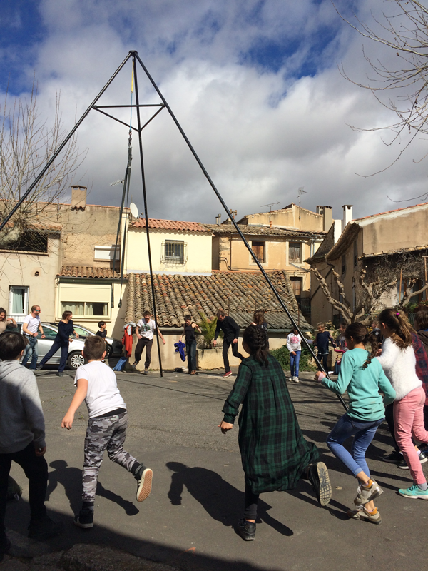 Nous revenons en terre connue. L’an passé, nous venions jouer Ici, maintenant ? dans l’ancienne école du haut. Le vent nous accueille avec un groupe d’enfant surmotivé. Au programme de la semaine, composer avec l’ensemble des ingrédients qui composent le spectacle :
